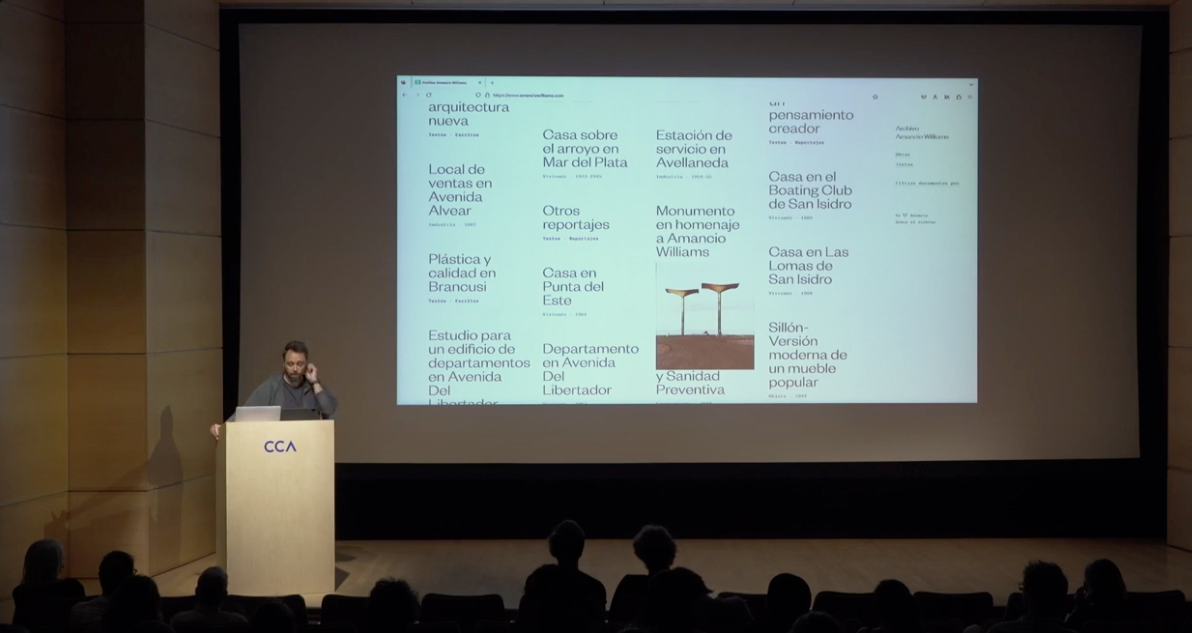 Al conocer la decisión de la familia Williams respecto del futuro de los documentos que su padre acuñó por años, y su búsqueda de instituciones internacionales que la albergasen, nos enfocamos en el umbral del mientras tanto, al proponerles un programa de digitalización que pudiera cubrir una gran parte del archivo. Un proyecto que derivó en una nueva web, que ha sido el escenario casi exclusivo de las búsquedas relacionadas a Williams en los últimos años. Mientras nos focalizamos en fotografiar grandes cantidades de documentos, como si se tratase del accionar de un movimiento de resistencia y rescate, decidimos en paralelo exhibir la labor del arquitecto más allá de la selectiva curadoría que él mismo había profesado sobre su propia obra, visible en el libro póstumo que editó y compiló con uno de sus últimos discípulos.