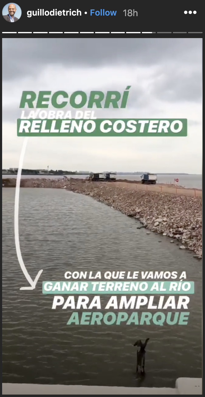 Con obtusa literalidad, el hoy ex Ministro (o su Community Manager) posteaba alegremente lo siguiente: “Recorrí la obra del relleno costero con la que vamos a ganar terreno al río para ampliar aeroparque. Todo esto antes era río. Lo vamos a transformar en un estacionamiento, espacio público y una nueva vialidad.”