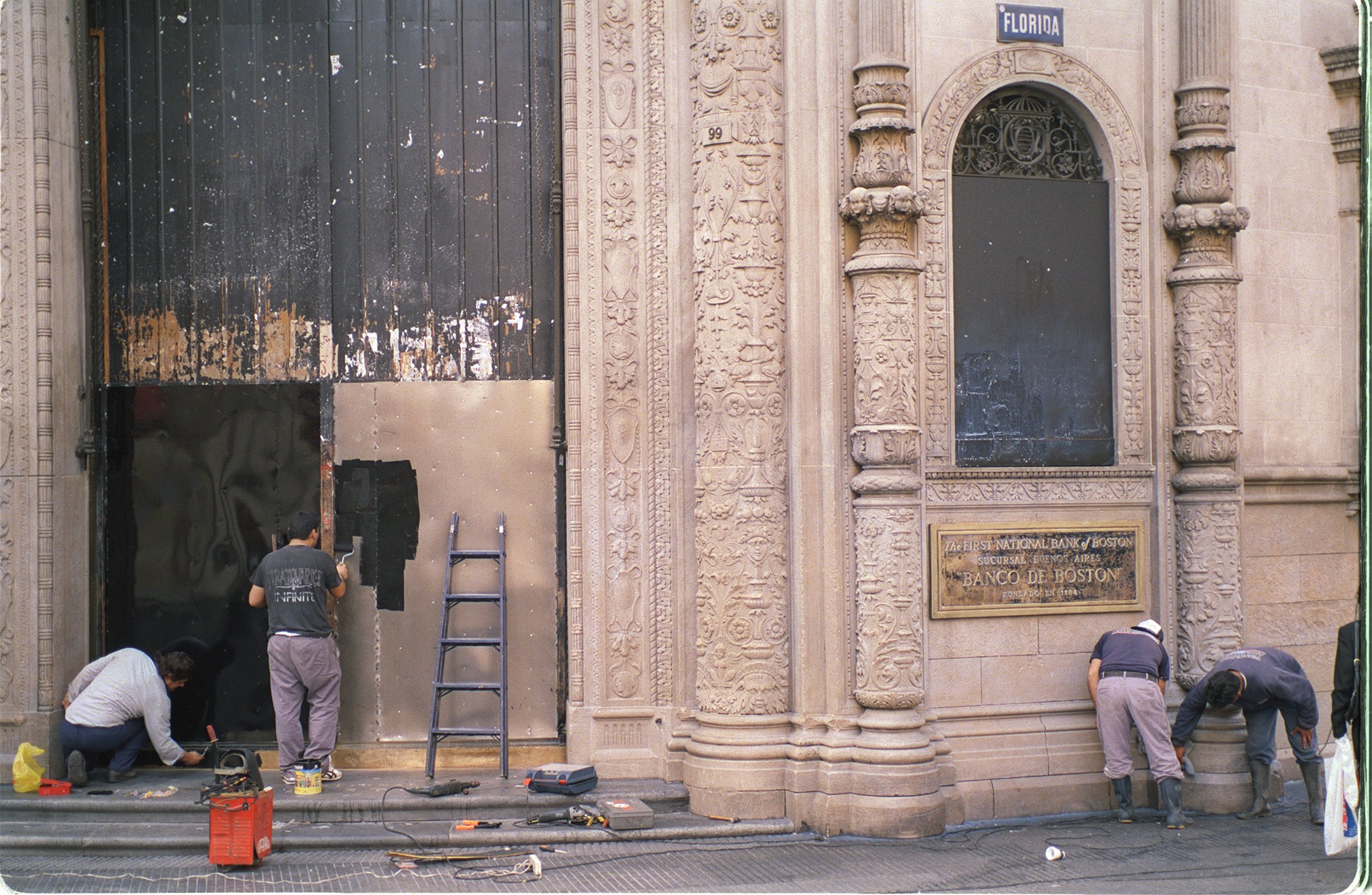 Through photographs, drawings, and advertisements of banks published in Revista de Arquitectura in the 1920s and 1930s and through photographic records of demonstrations from late 2001 and early 2002, this research reconstructs the history of an aesthetic of trust, including its fatal outcome. In all of the documents, we see closed doors are a point of reference: they are devices that concentrate the tensions between society, institutions, and the city.