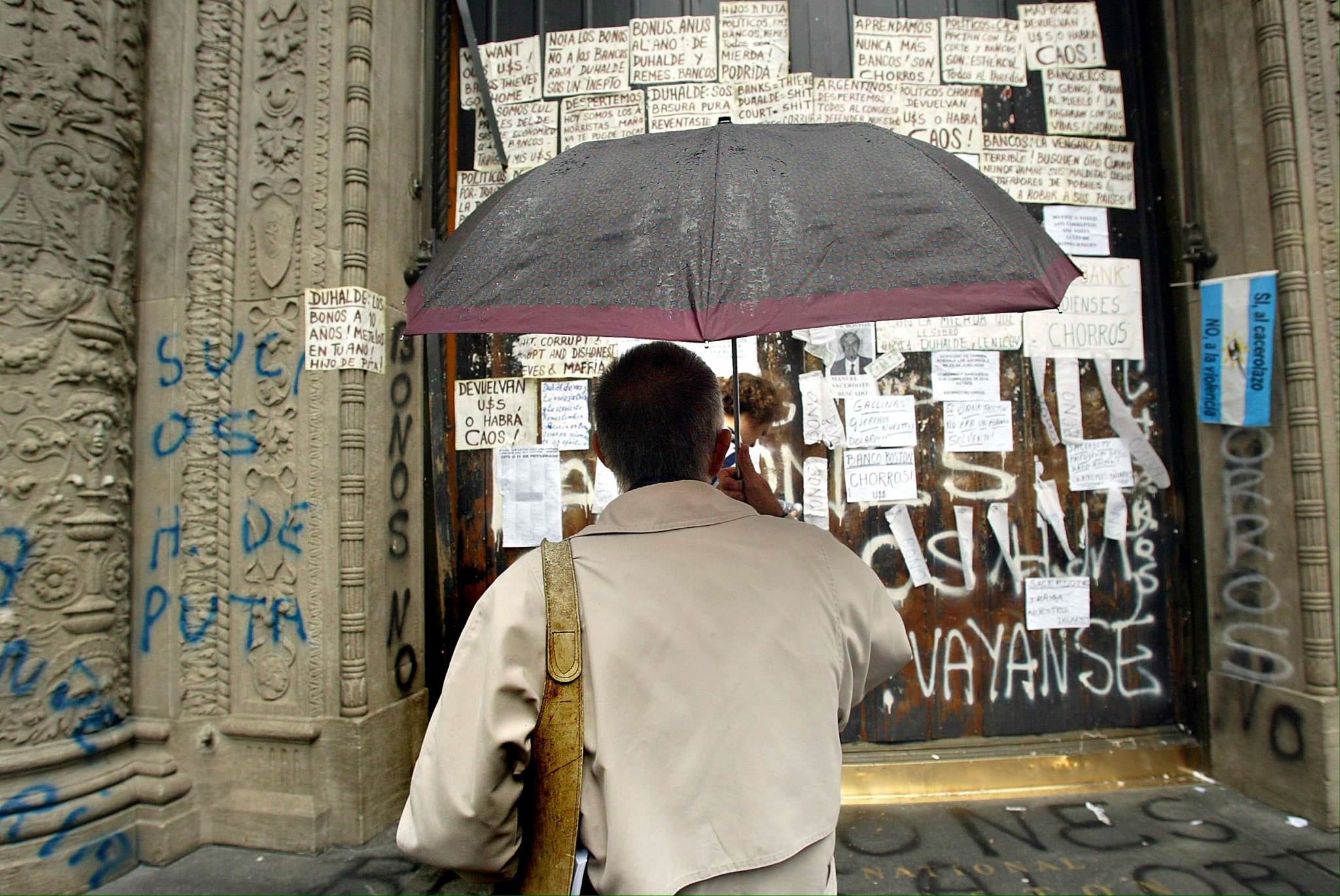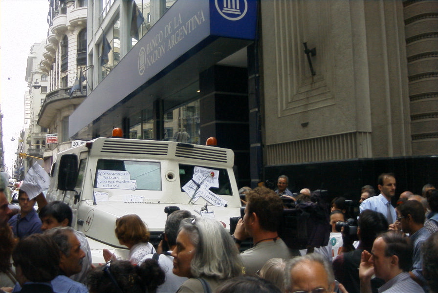 The relationship between Argentinian society and its banking system is covered by a heavy veil of mistrust and deception. December 2001 marked a turning point in its history—a total breakdown of the banking system. The neighbourhood of Buenos Aires that houses the headquarters of the main banks in a few blocks, popularly know as La City, was the centre of the scene.
