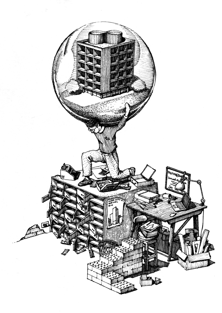The weight he feels at that moment, then, is not related to the banknotes per se, but to the actual load of his own and collective expectations of developing a building; the effort and time invested by all those behind this endeavour. He does not know it yet, but one day he will remember this moment with tenderness and a certain shame—it is the day that the trance of his childhood and of the academy was permanently erased from his conscience, replaced with the weight of an entire building.